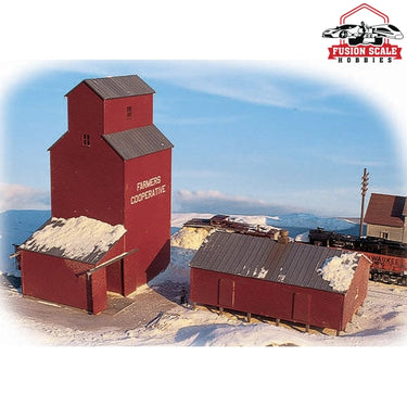 Walthers Cornerstone N Scale Farmer's Coop Rural Grain Elevator Kit Elevator: 43/8 x 53/8 x 6" 11 x 13.7 x 15.2cm