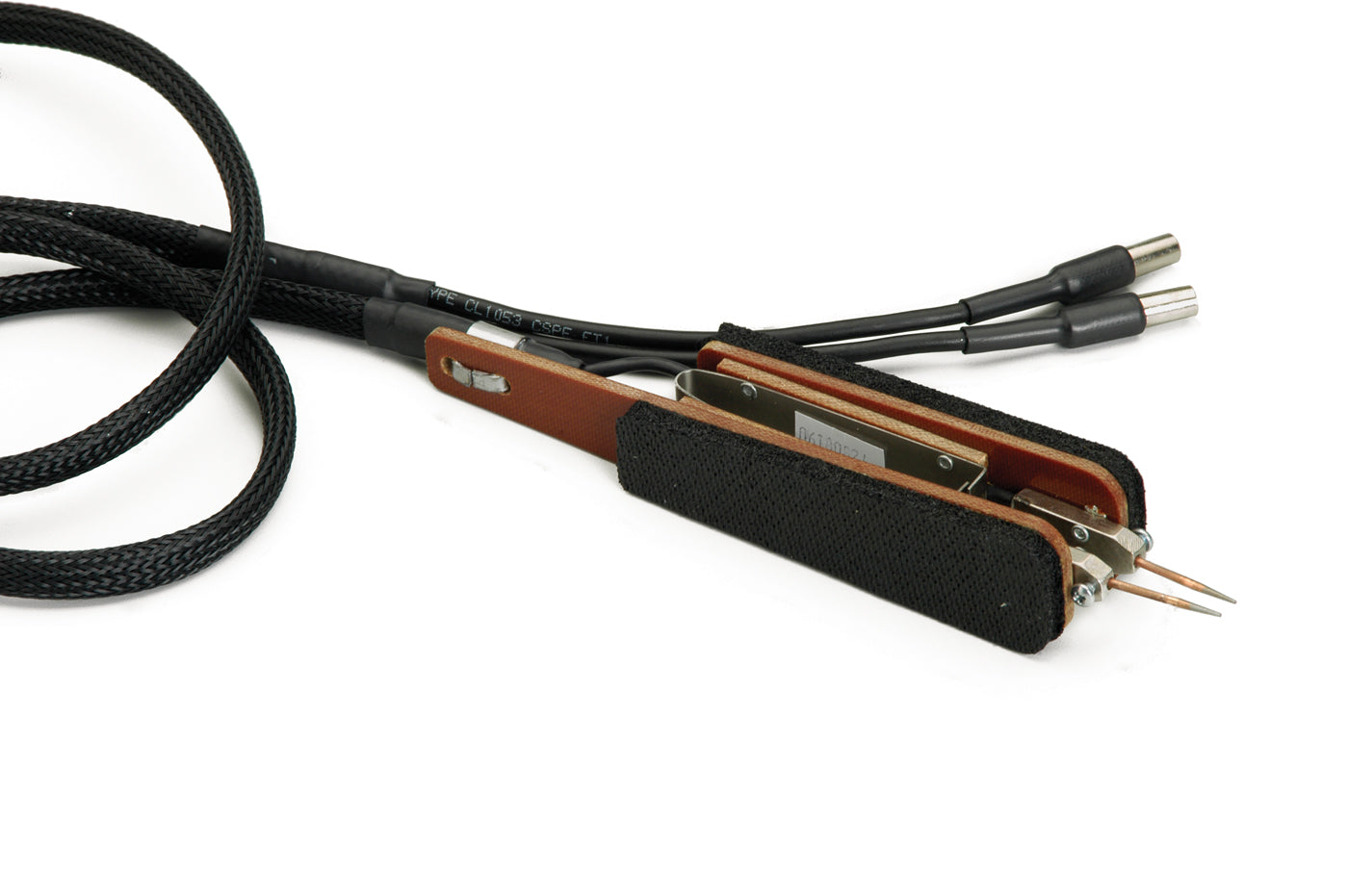 Copper-coated, stainless steel electrodes are thin enough to permit soldering in the tightest of areas, yet strong enough to last much longer than soldering iron tips.
