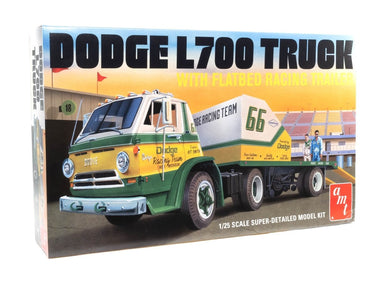 - CLASSIC BIG RIG KIT FOR EXPERIENCED MODELERS: AMT’s 1/25 scale 1966 Dodge L700 Truck w/ Flatbed Racing Trailer is ready to haul! The 8.5" flatbed is great for displaying almost any 1/25 scale racer, whether a vintage stock car or funny car. Add it to your collection today!