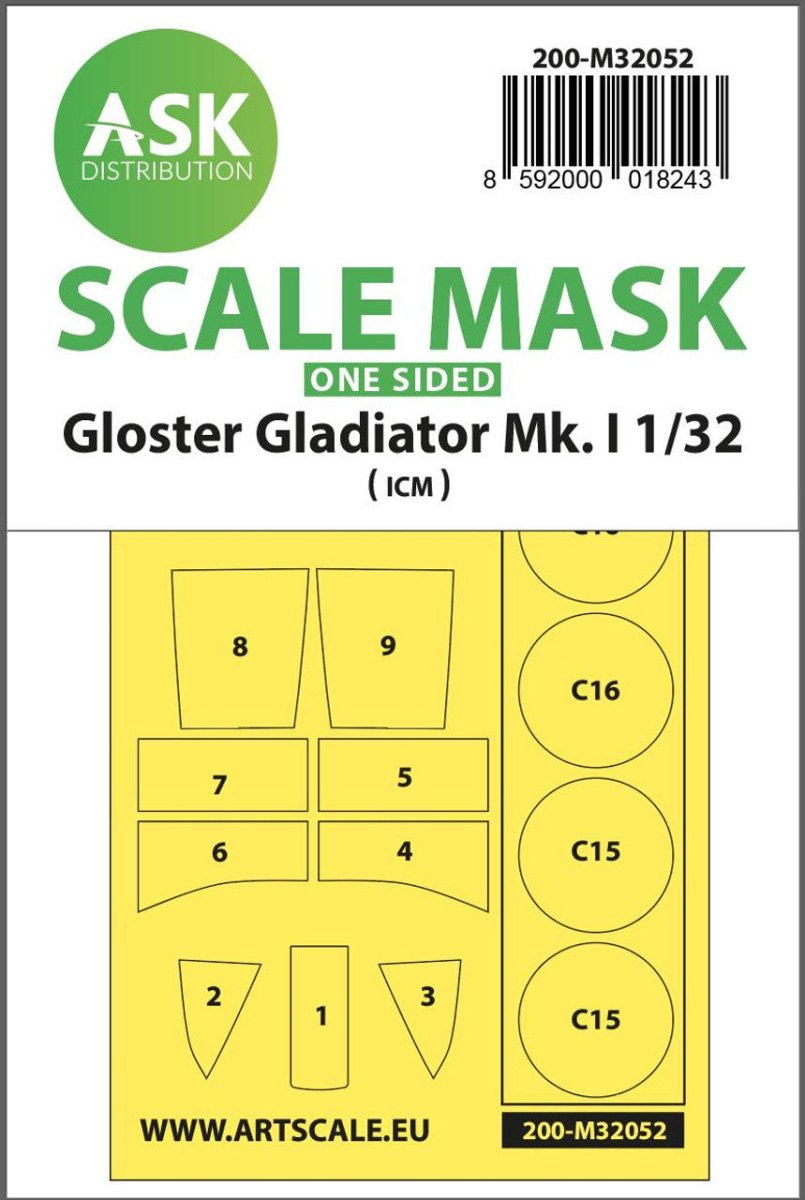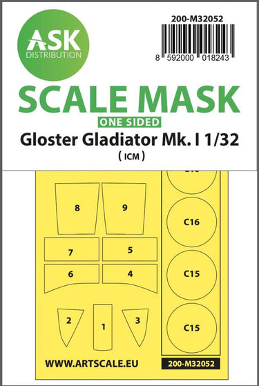 1/32 Art Scale Gloster Gladiator Mk.I one-sided painting mask for Revell / ICM