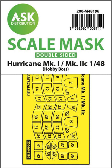 Art Scale 1/48 Art Scale Hawker Hurricane Mk.I / Mk.IIc double-sided express fit mask for Hobby Boss