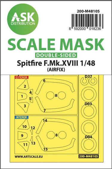 1/48 Art Scale Spitfire F.Mk.XVIII double-sided mask self-adhesive, pre-cutted for Airfix