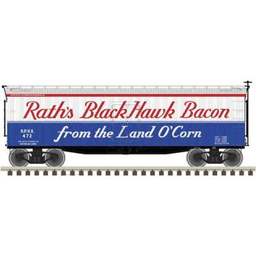 Atlas HO Scale Rath's Black Hawk Bacon 40' Wood Reefer 472 (red, white, blue, black)