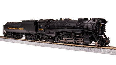 This HO Scale Class Class K-2 2-8-2 Mikado from Broadway Limited is based on Chesapeake & Ohio's 150 2-8-2s - classes K-2, K-3, and K-3a. All the K-2s and K-3s were built by Alco-Richmond. The primary feature differentiating the K-2s and K-3s was the booster. The K-2s had a booster, and although considered a "light Mikado," they could exert 10% more tractive effort than the booster-less K-3s. The C&O used its Mikados for almost any job, and they were considered the mainstay of C&O power for twenty years. They could be found on manifest freights, local freights, coal trains, work trains, and occasionally passenger trains. They were the dominant power on C&O's James River Line and also the Chicago Line in Indiana.
