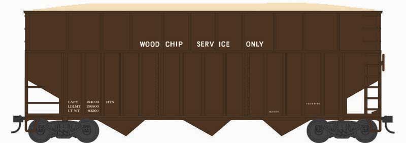 Bowser HO Scale 70 Ton Woodchip Hopper Brown Data only Rib Side - 43435