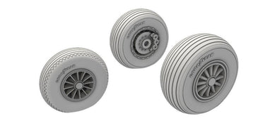 Detail resin cast wheels for the Hobby Boss models of the US A-26 Invader ground attack and bomber aeroplane. The kit contains black vinyl items which not liked very much by the modellers.