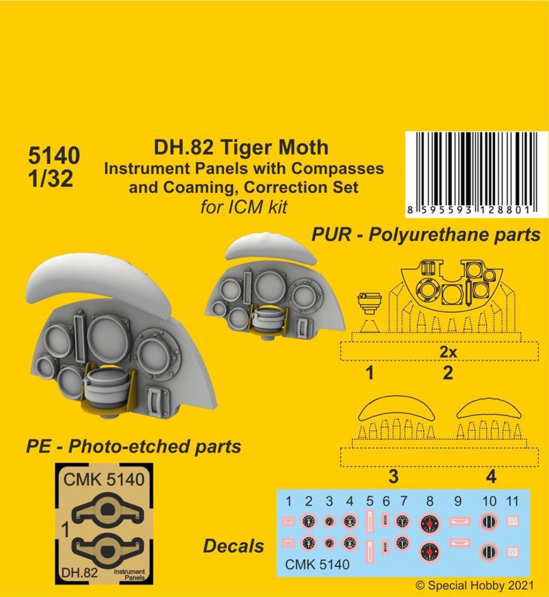 CMK 1/32 CMK DH.82 Tiger Moth Instrument P. with Compasses and Coaming. Correction S. (ICM kit) Resin