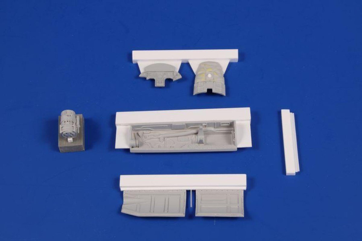 The F-104 G/Js were fitted with 20mm Vulcan rotary cannon. This detail set brings the cannon compartment showing the assembly of the six barrels. The set contains set of photo etches. Designed for Kitetic kits.