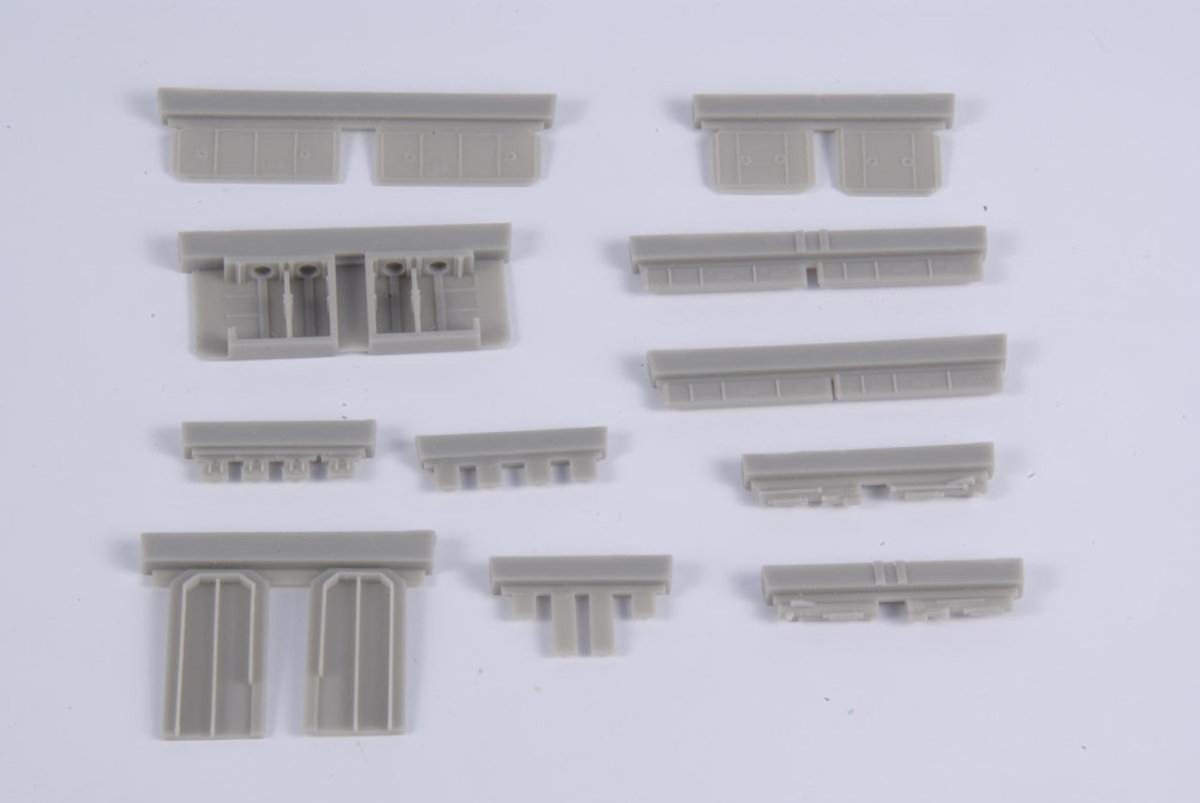 Detailed resin set brings open wing weapon bays and ammo magazines for a model of the Japanese fighter plane (the 1/48 Hasegawa J2M3 kit). The set also contains photo etched construction inside the open bays.