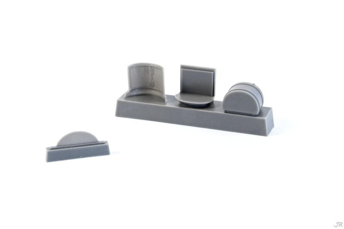 Resin rendition of the fuselage fuel tank that was located in front of the French D 520 figher pilot’s cockpit. The set contains not just the tanks, you will find the bulkheads and cover panel there too.