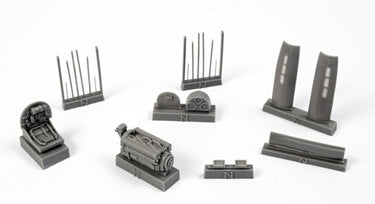 This detailed open engine compartment set has been designed to fit the new 1/72 Special Hobby P-40N kit. The set contains also the cowling panels.