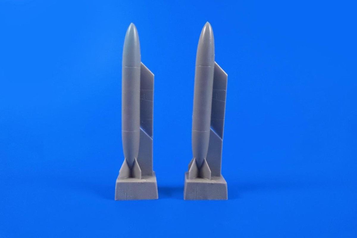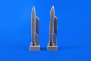 The set offers the modeller two underwing fuel tanks cast together with the pylons and stabilizing fins. They will fit any kit of the French Vautour post-war jet aircraft in this scale.