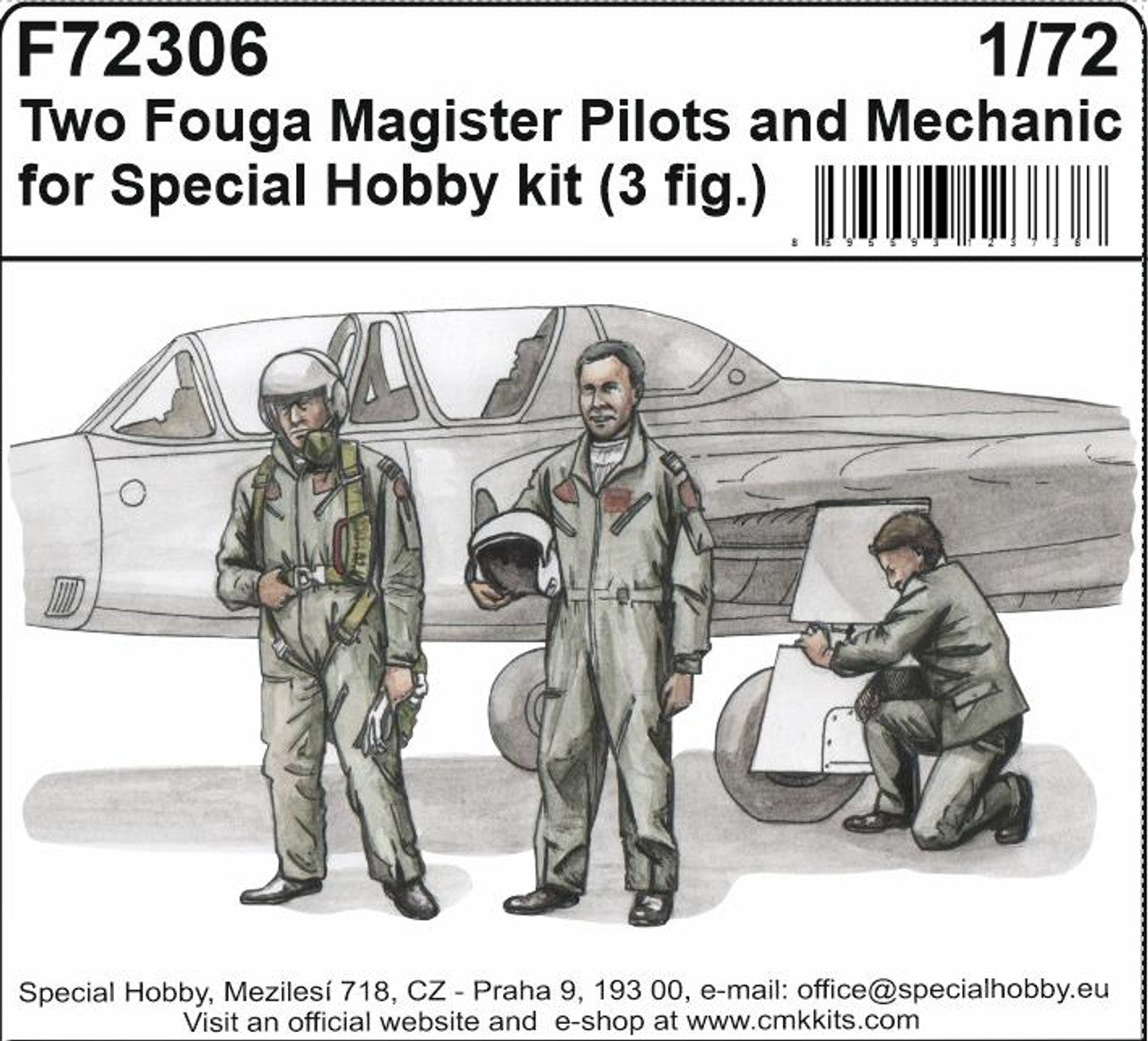 The new Special Hobby Fouga Magister kit will benefit not only from addition of nicely detailed resin wheels (CMK set no. Q72228) or pilots´ seats (Q72227), the modeller also may wish to add a trio of convincingly sculpted figures, two of which are the pilots and the last one depicts a ground crew member.