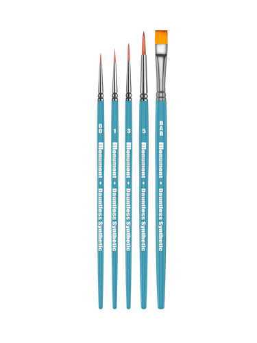 Our Dauntless Synthetics are designed for everyday use at an affordable cost. These brushes offer great control and an excellent painting experience at a much lower price, making them perfect for new painters or painters who often need to replace their brushes.