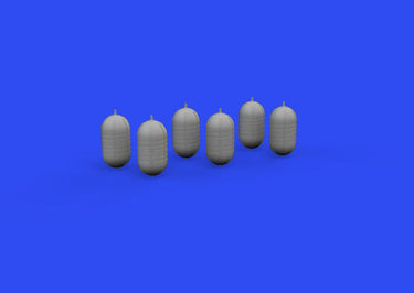 Brassin set oxygen tanks for US WII aicraft in 1/48 scale.The set consists of 6 tanks.