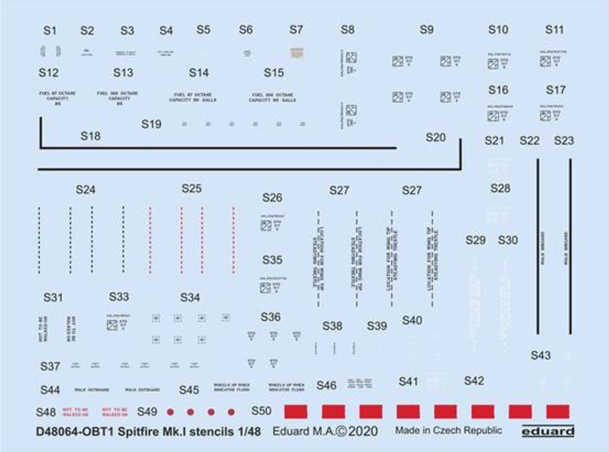 Eduard 1/48 Eduard Decal Spitfire Mk.I stencils for Eduard