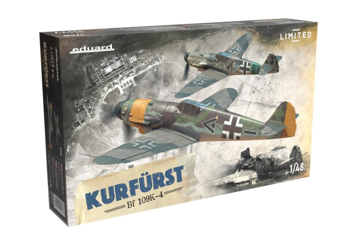 The Limited edition kit of the German WWII fighter plane Bf 109K-4 in 1/48 scale.The TWIN DECAL sheet included.