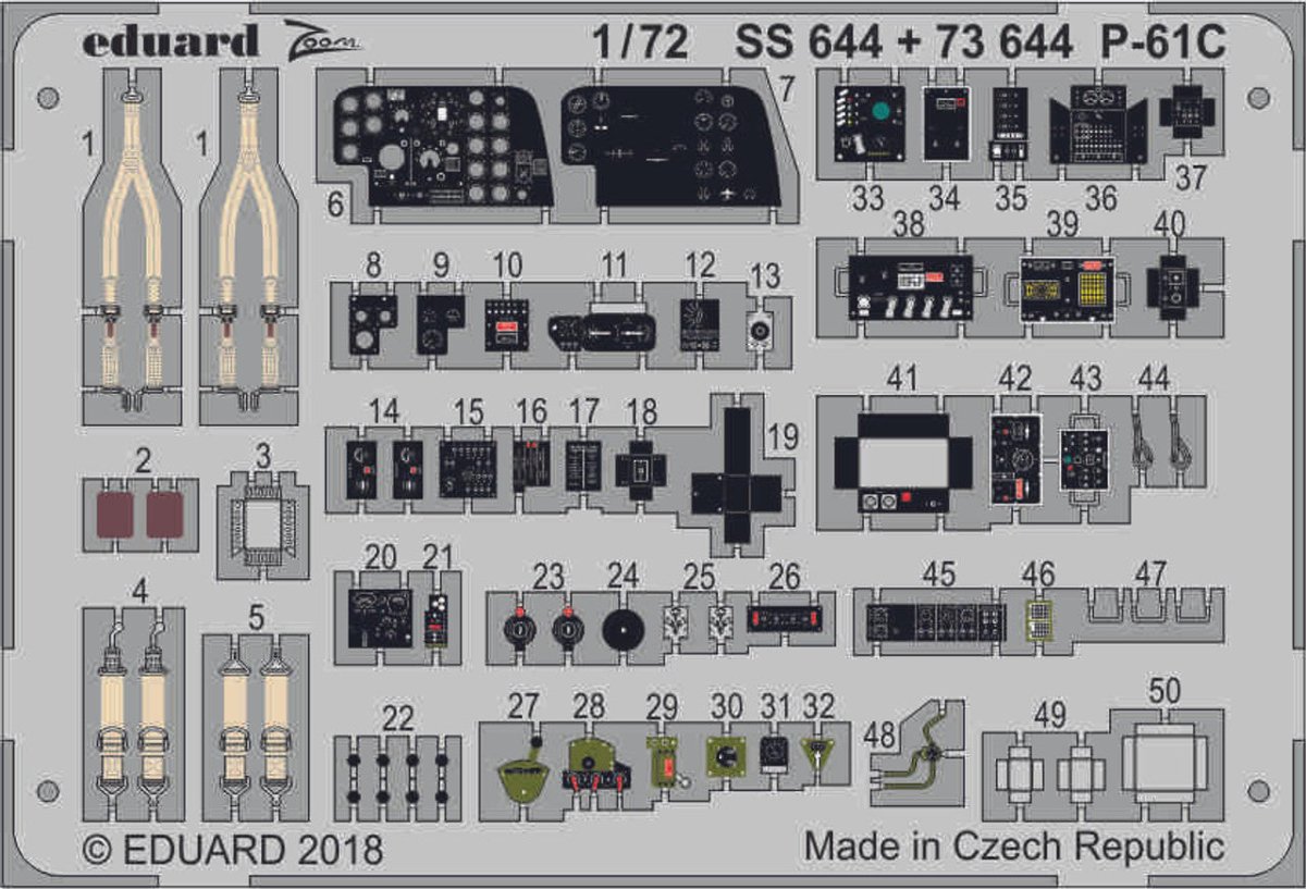 Eduard 1/72 Eduard P-61C Interior for Hobby Boss (Pre-Painted)