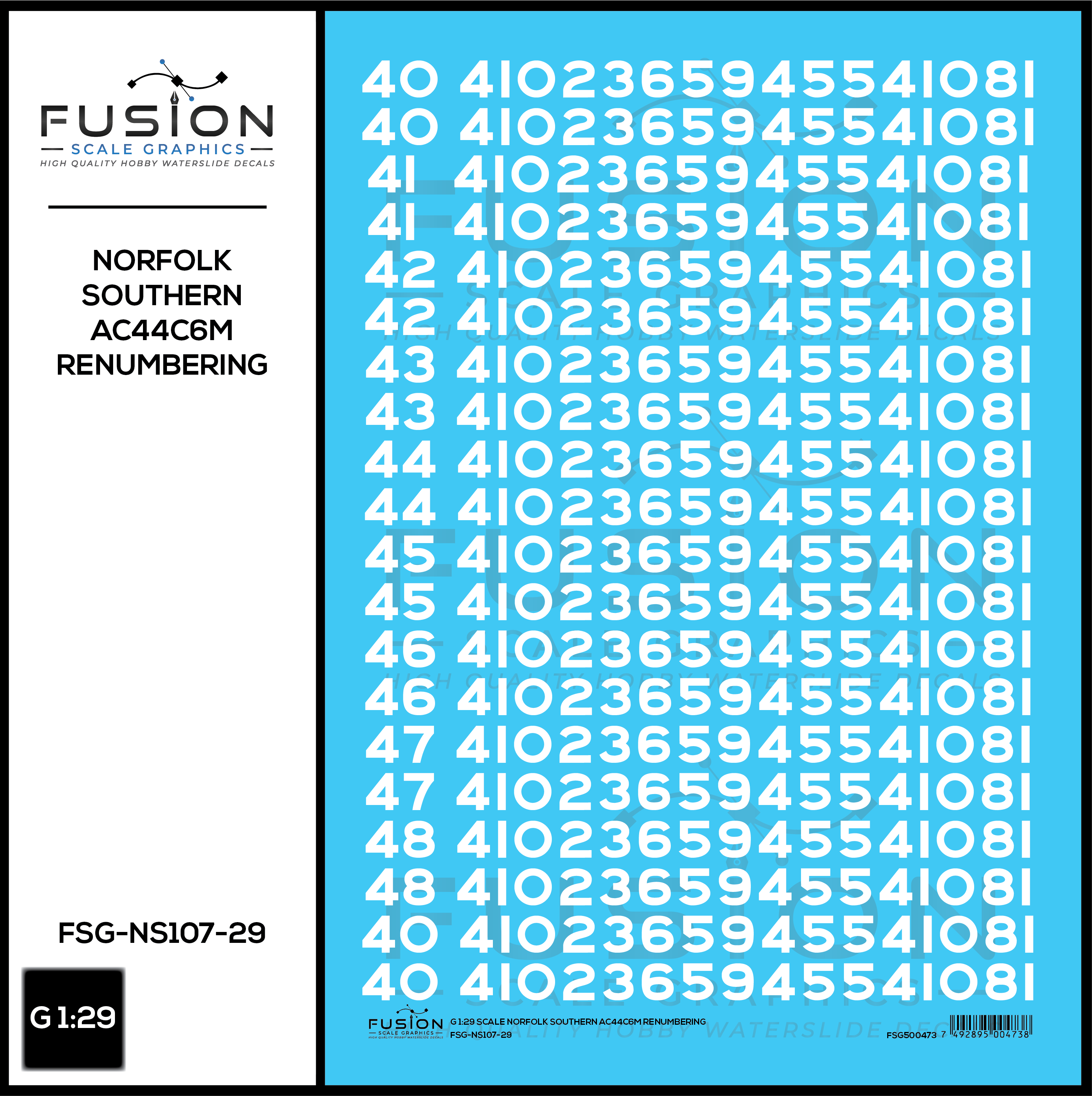 G 1:29 Scale Norfolk Southern GE AC44C6M Locomotive Renumbering Decal Set