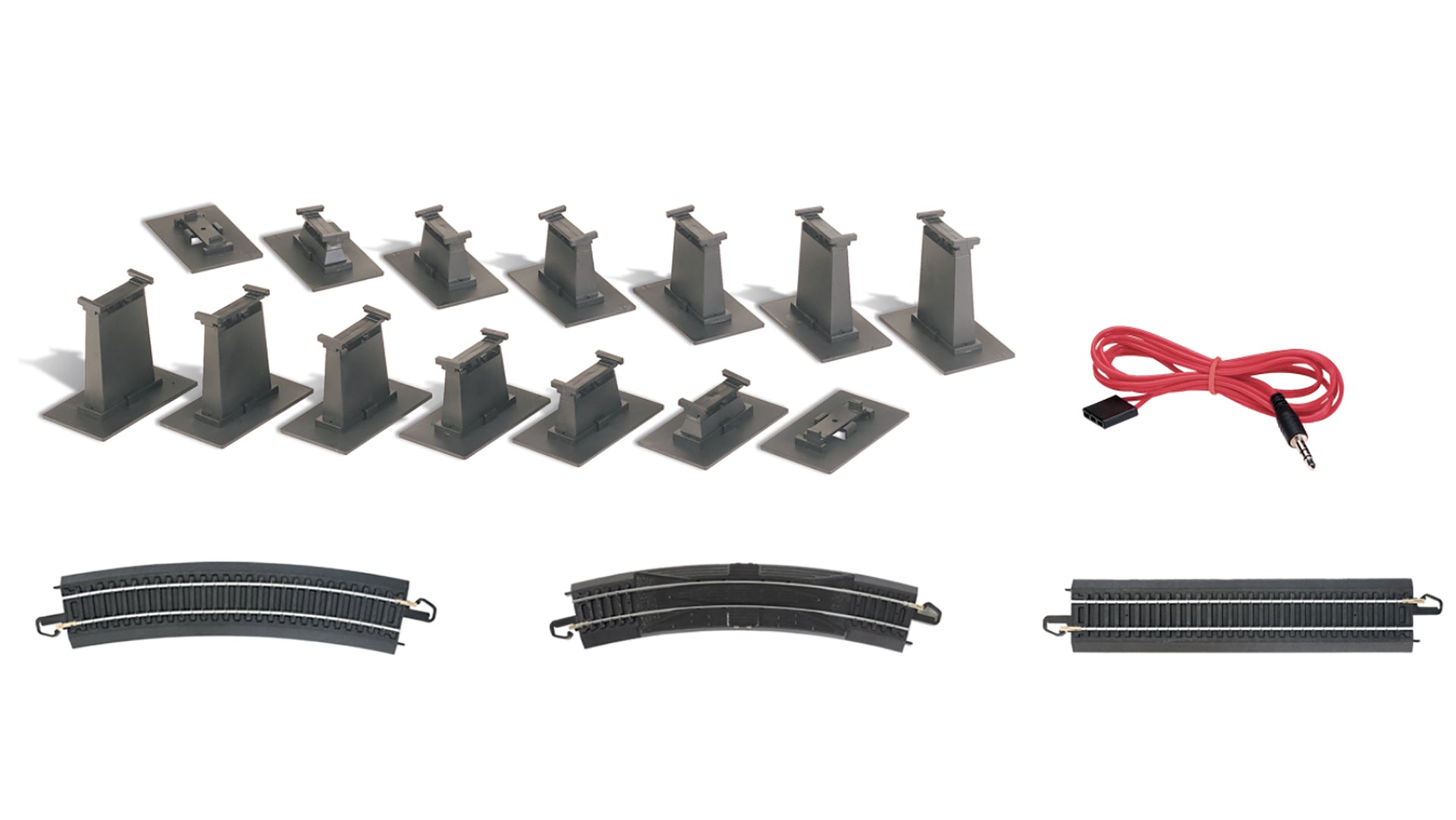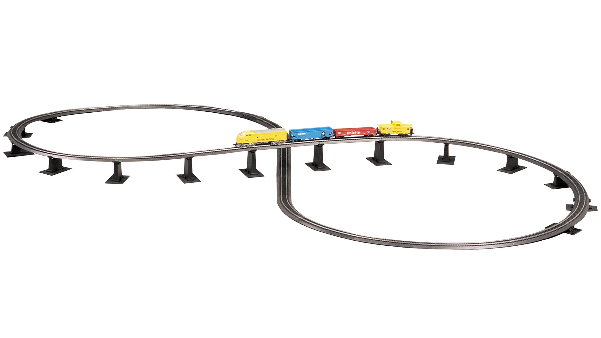Railroading fun gets bigger and better with our steel alloy E-Z Track® Over-Under Figure 8 Track Pack! Create a giant 78" x 36" over-under “Figure 8” with the 14-piece graduated pier set, 20 pieces of 18" radius curved E-Z Track®, and 4 pieces of 9" straight E-Z Track® included in this track pack.