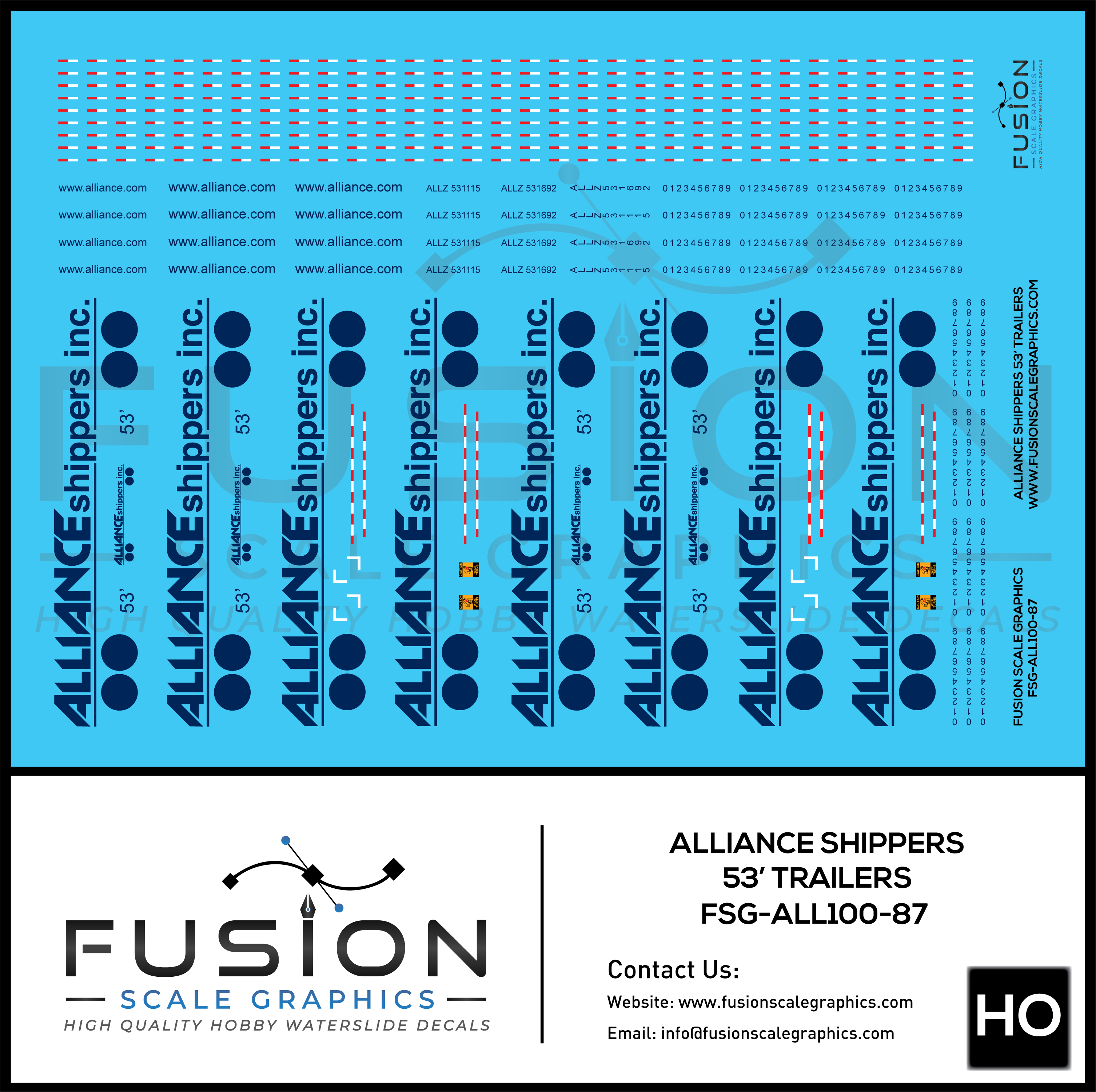 HO Scale Alliance Shippers 53' Trailers Decal Set