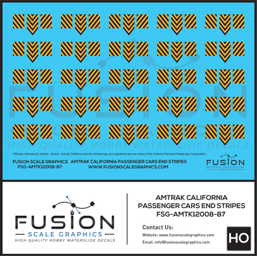 HO Scale Amtrak California Passenger Car End CabCar Stripes Yellow Striping Decal Set