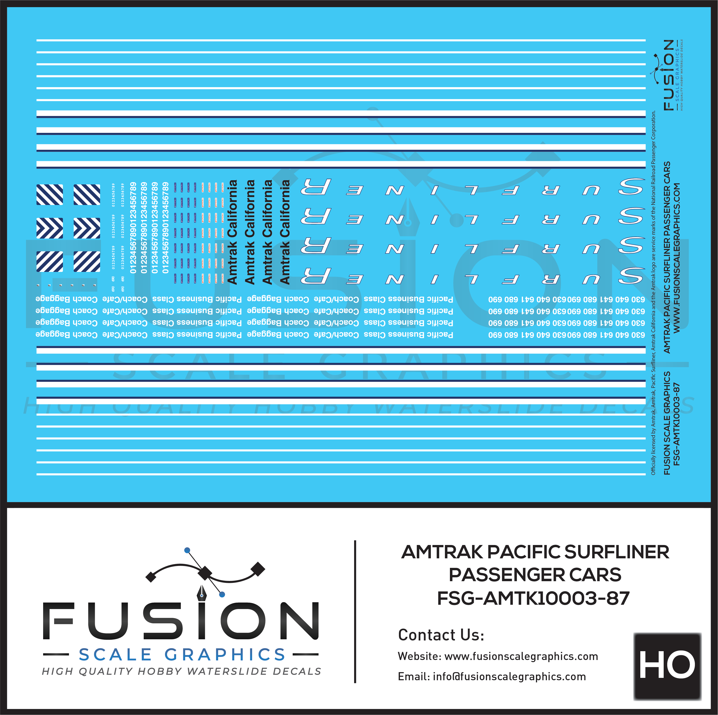 HO Scale Amtrak Pacific Surfliner Passenger Cars Decal Set