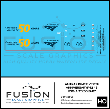 HO Scale Amtrak Phase V 50th Anniversary P42 46 Locomotive Decal Set