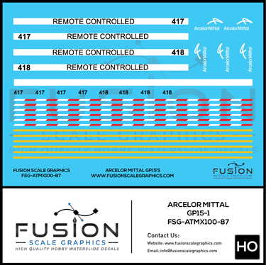 HO Scale Arcelor Mittal EMD GP15-1 Locomotives Decal Set.