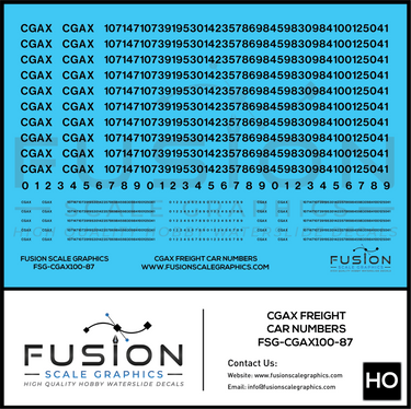 Home HO Scale CGAX Freight Car Numbering Decal Set