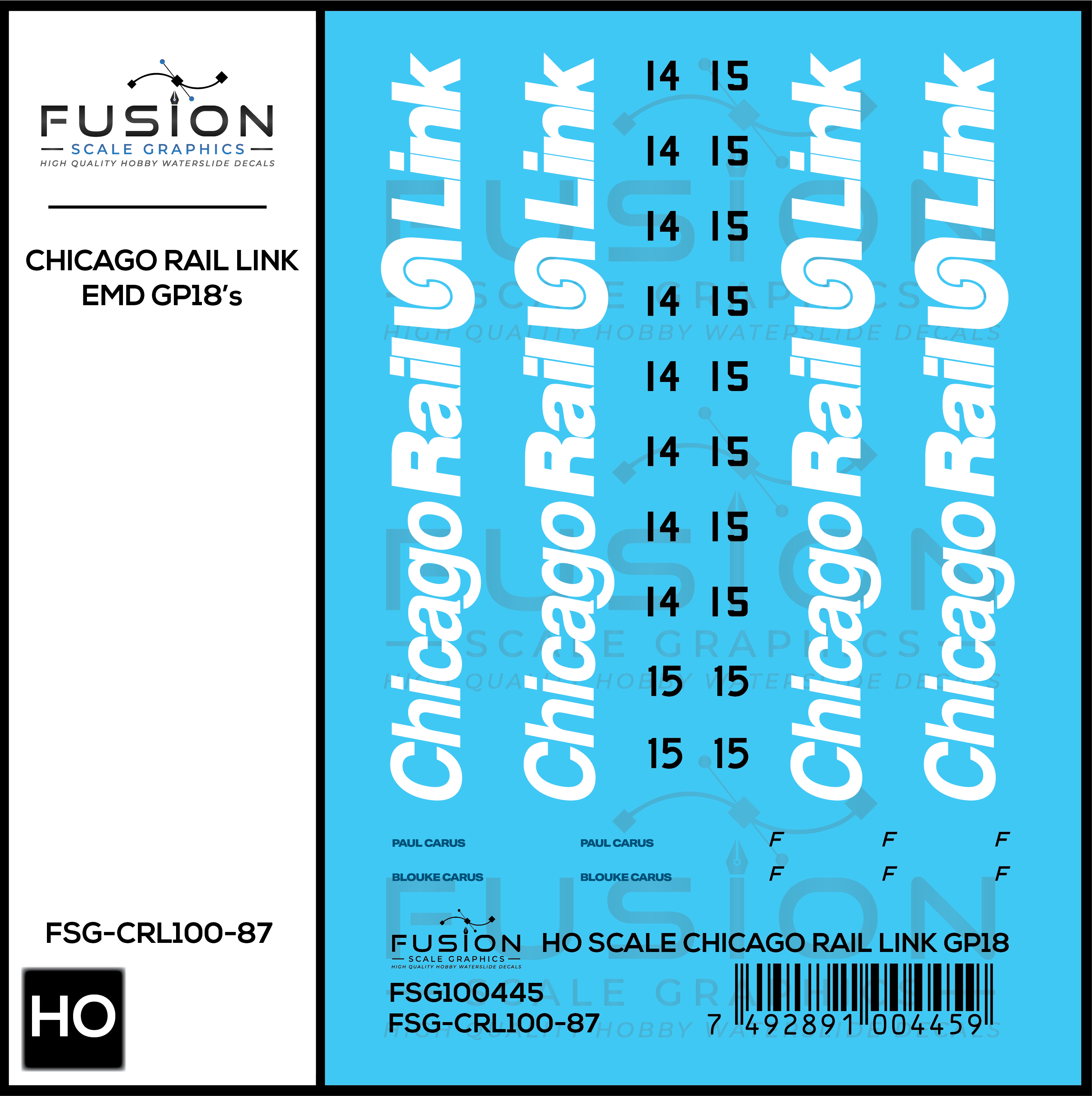 Home HO Scale Chicago Rail Link EMD GP18 14 & 15 Locomotive Decal Set