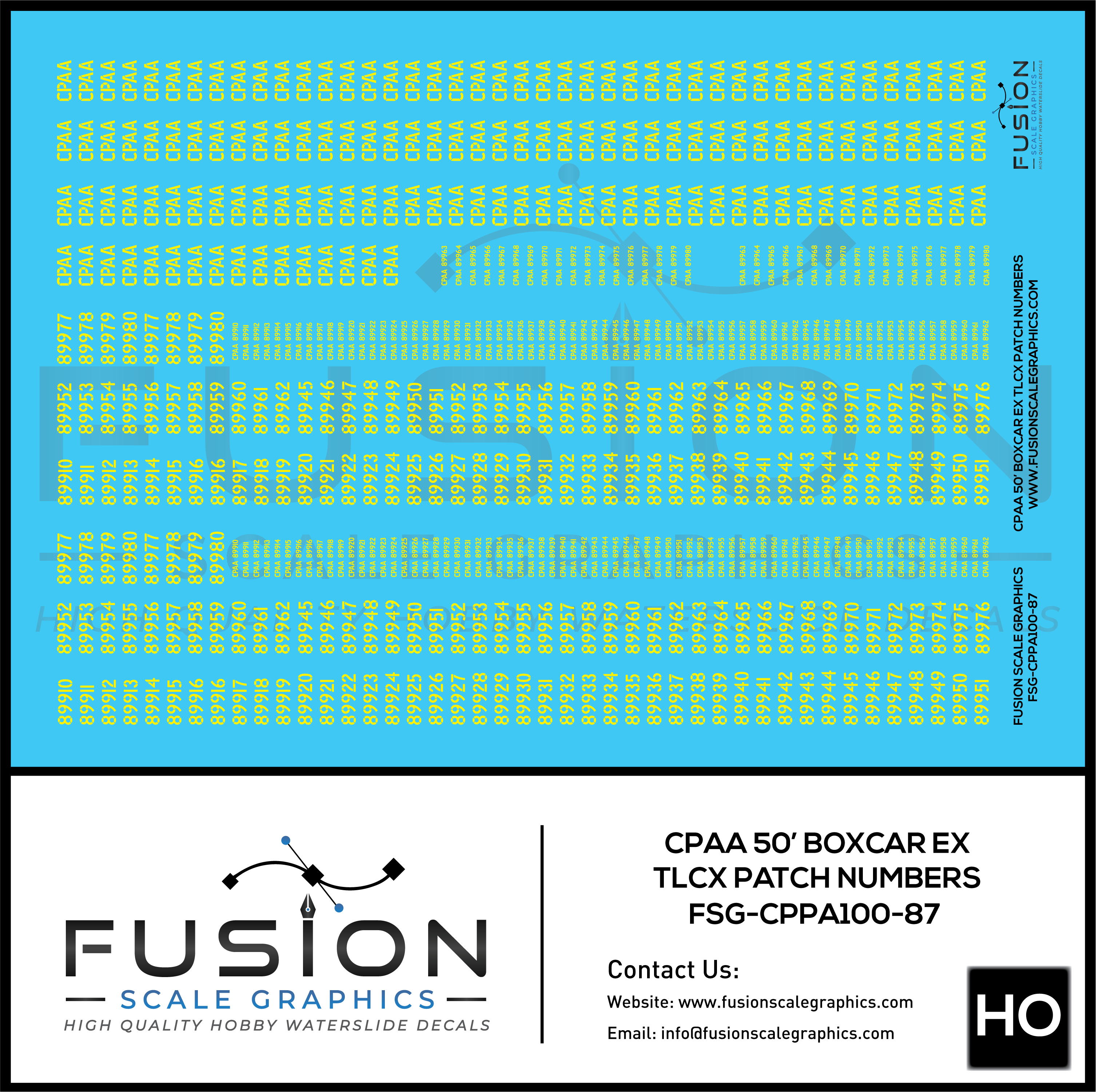 HO Scale CPAA 50' Boxcars ex TLCX Number Patching Decal Set