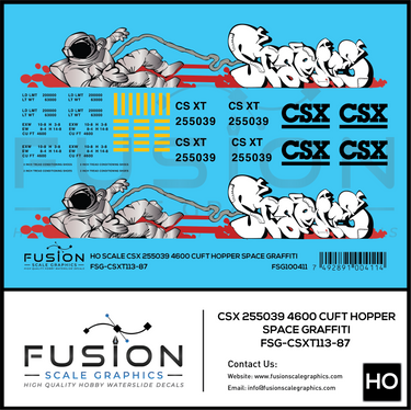 HO Scale CSX 255039 4600 CUFT Hopper Space Graffiti Decal Set