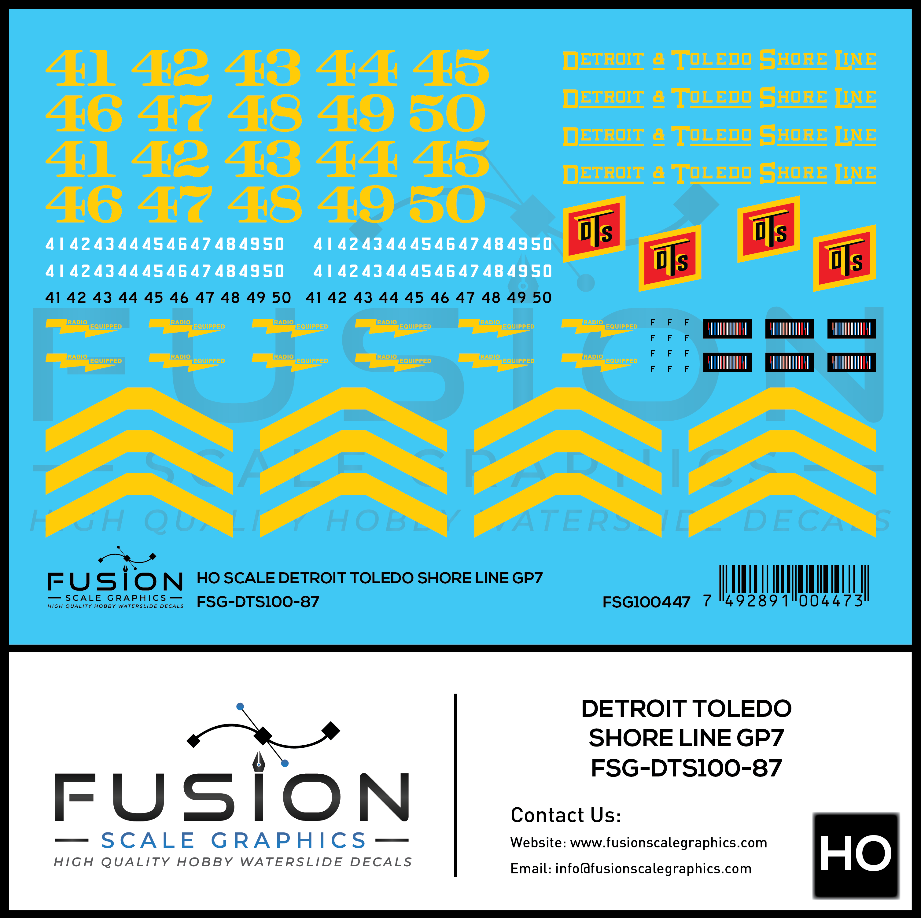 HO Scale Detroit & Toledo Shore Line EMD GP7 Locomotive Decal Set