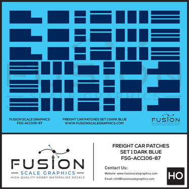 HO Scale Freight Car Patches Set 1 Dark Blue Decal Set
