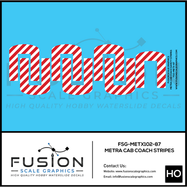 HO Scale Metra Cab Coach Safety Sripes Decal Set