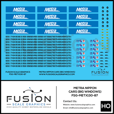 HO Scale Metra Nippon Sharyo Bilevel Passenger Car Decal Set