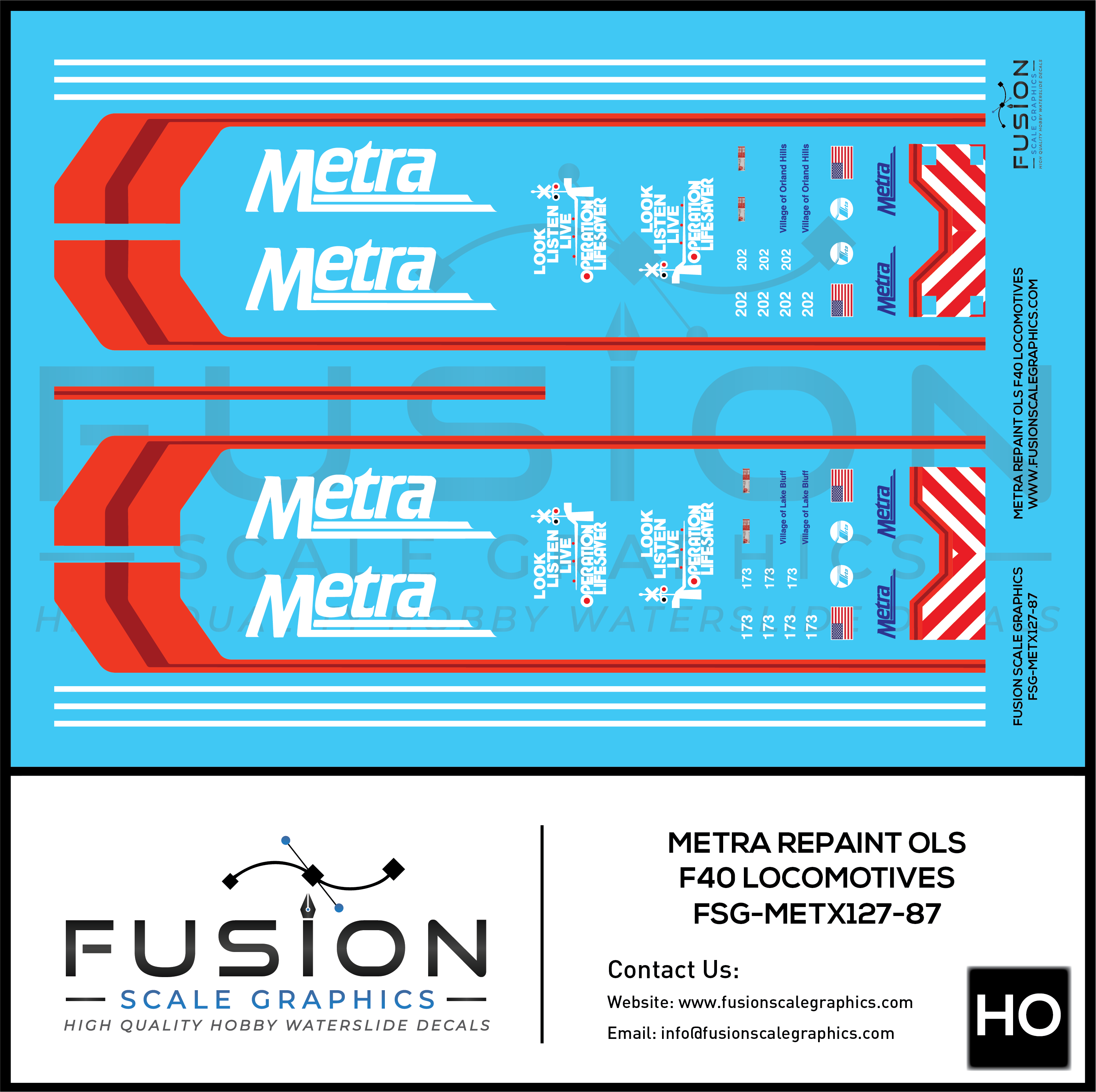 HO Scale Metra Repaint Operation Lifesavor F40 Locomotives Decal Set