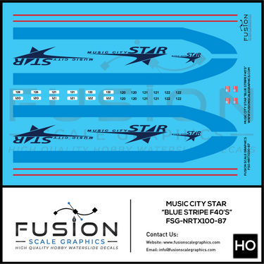 HO Scale Music City Star Blue Stripe F40PH Locomotives Decal Set