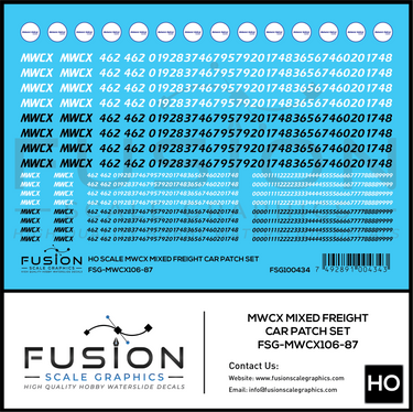 HO Scale MWCX Mixed Freight Car Patching Decal Set