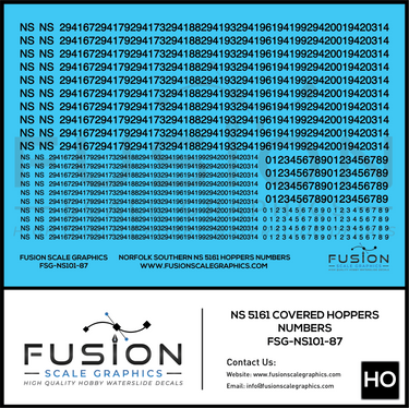 HO Scale Norfolk Southern 5161 NS Covered Hoppers Numbering Decal Set