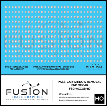 HO Scale Passenger Car Window Removal Decals For End of Car Decal Set.