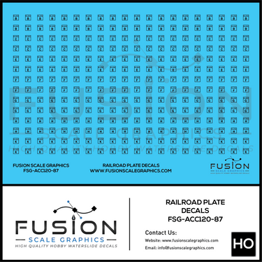 HO Scale Railroad Plate Decals Black Mix 1. This set includes many of the most popular railroad pate markings.