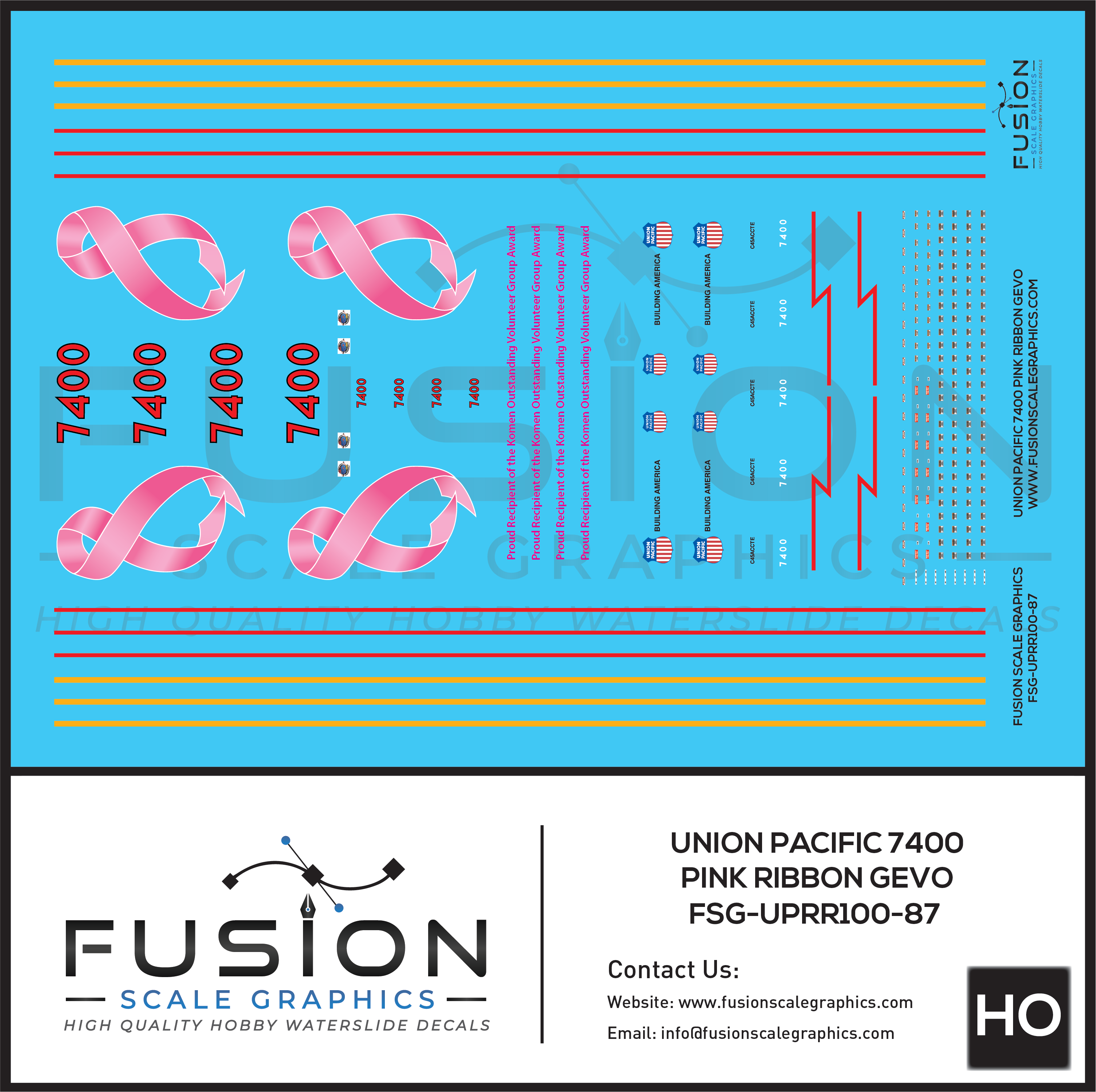 Home HO Scale Union Pacific 7400 Pink Ribbon GEVO Locomotive Decal Set