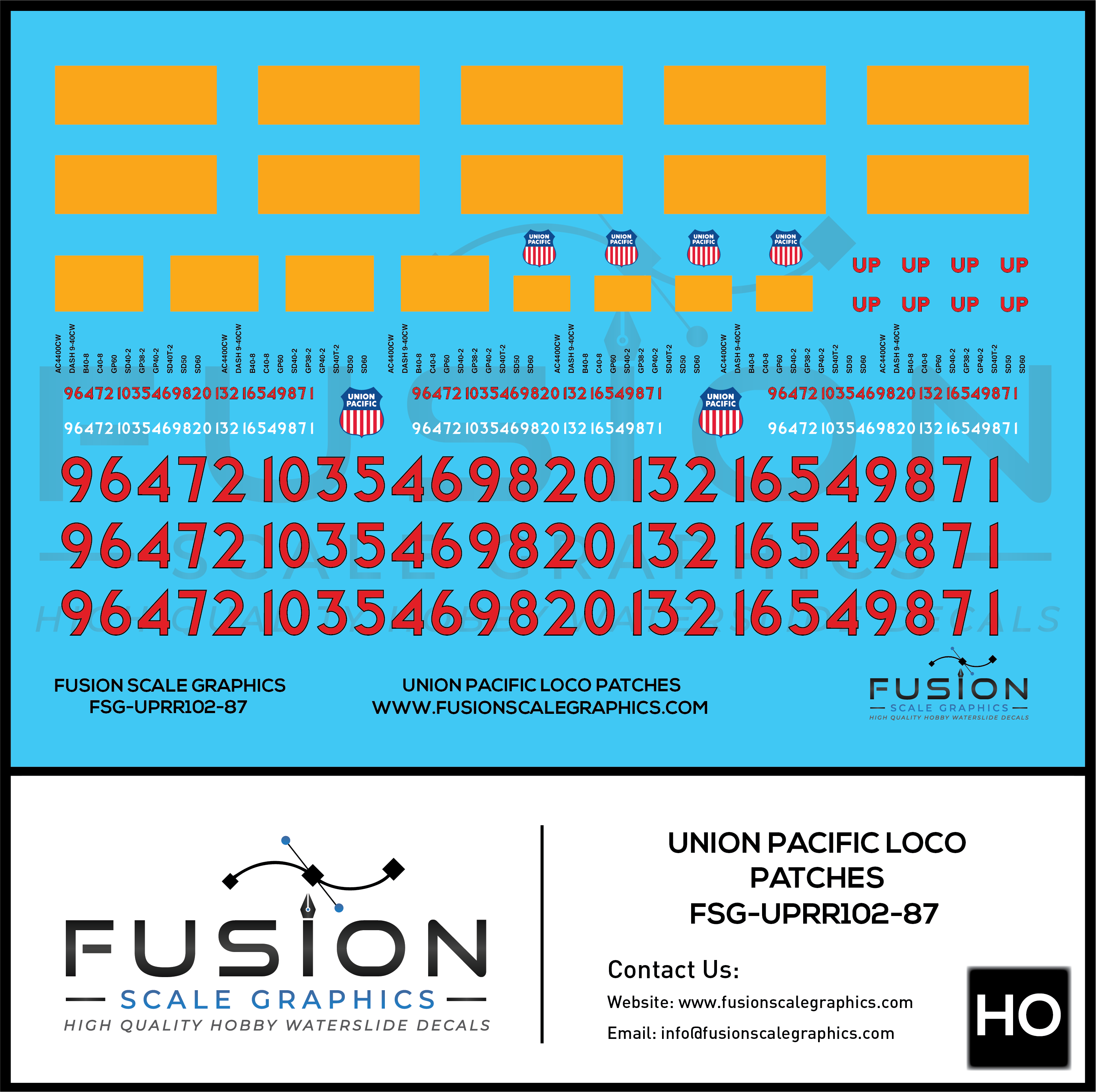 This sheet is perfect for patching ex SP, DRGW, SSW, CNW and many other locomotives purchased or inherited by mergers.