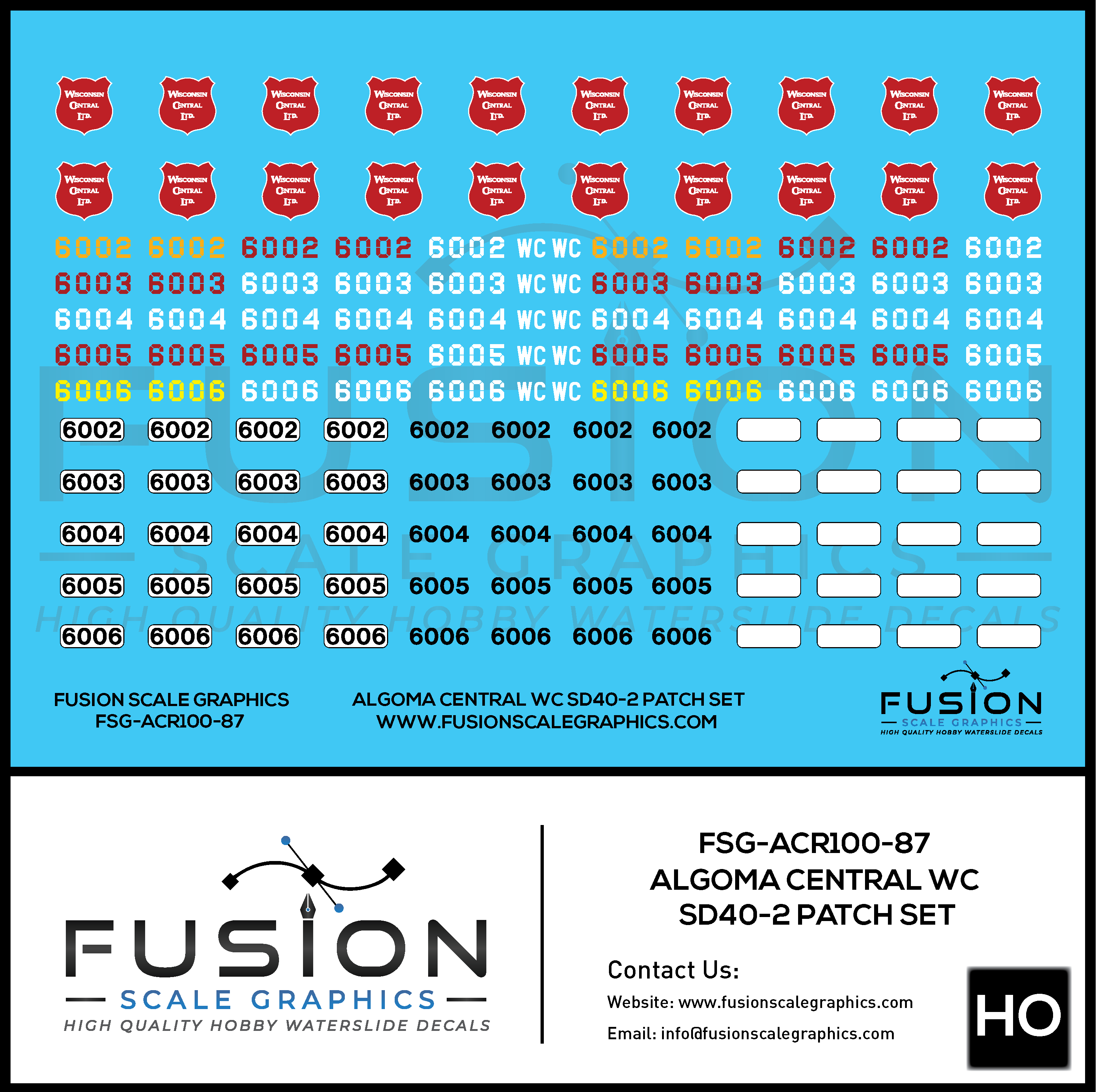 Home HO Scale Wisconsin Central WC ex Algoma Central EMD SD40-2 Locomotive Stencil Patch Decal Set