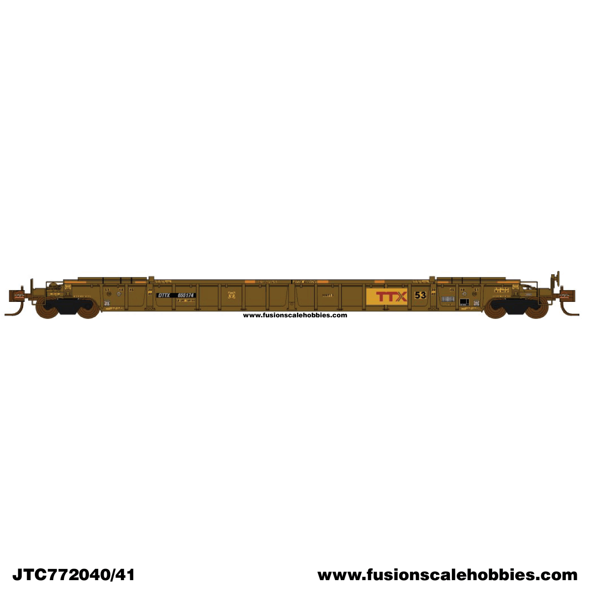 Jacksonville Terminal Co N DTTX NSC 53' well car Class NWF13 - 17 Post (W & P) w/stripes, large Red TTX 655174. JTC# 772040