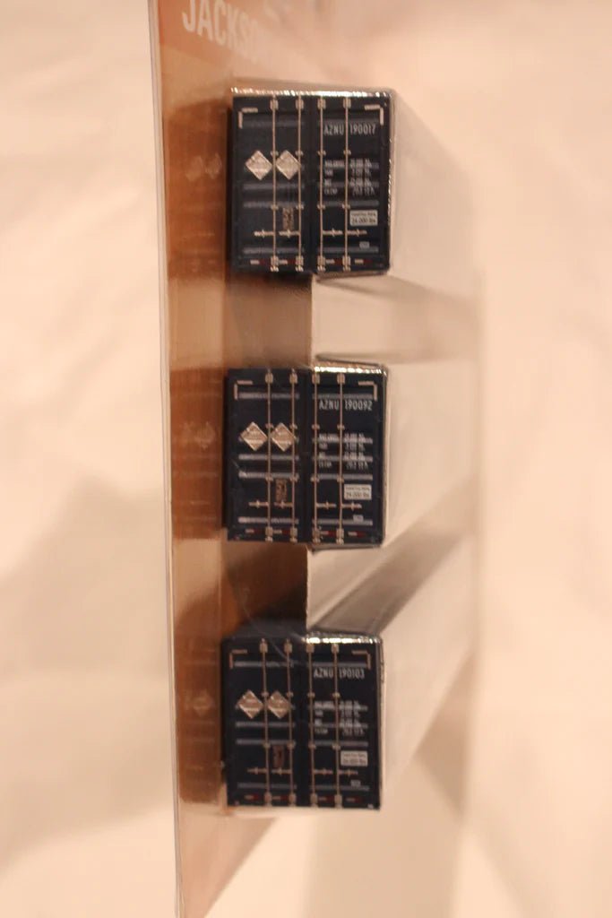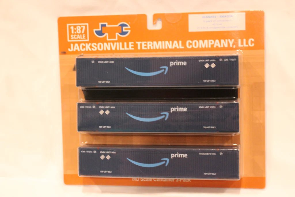 Jacksonville Terminal CO Amazon (HO Scale 1:87) 8-55-8 Set #4, 3-pack Corrugated 4VI container with placards. JTC# 95306934