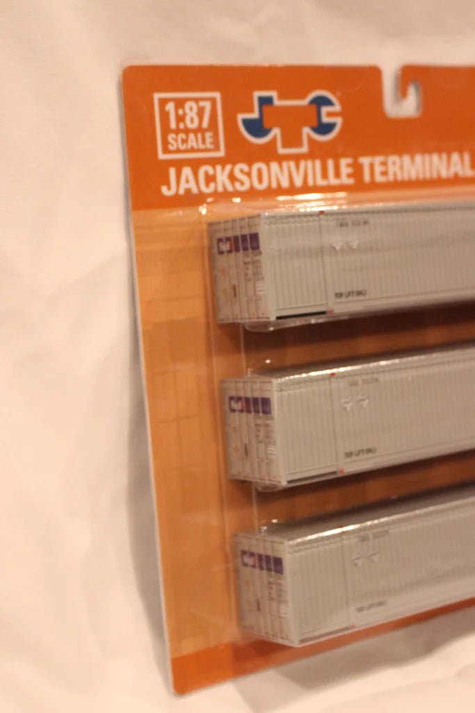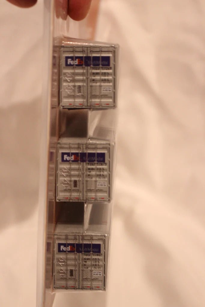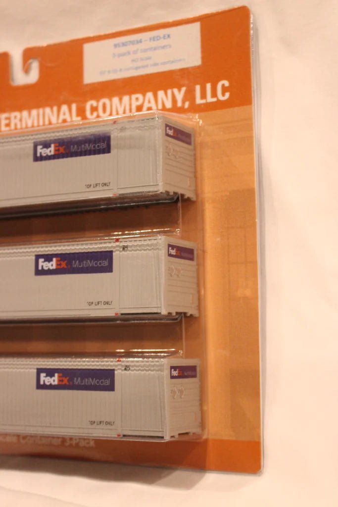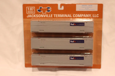 Jacksonville Terminal CO FedEx Multimodal (HO Scale 1:87) 8-55-8 Set #1, 3-pack Corrugated 4VI container with placards.. JTC# 95307031