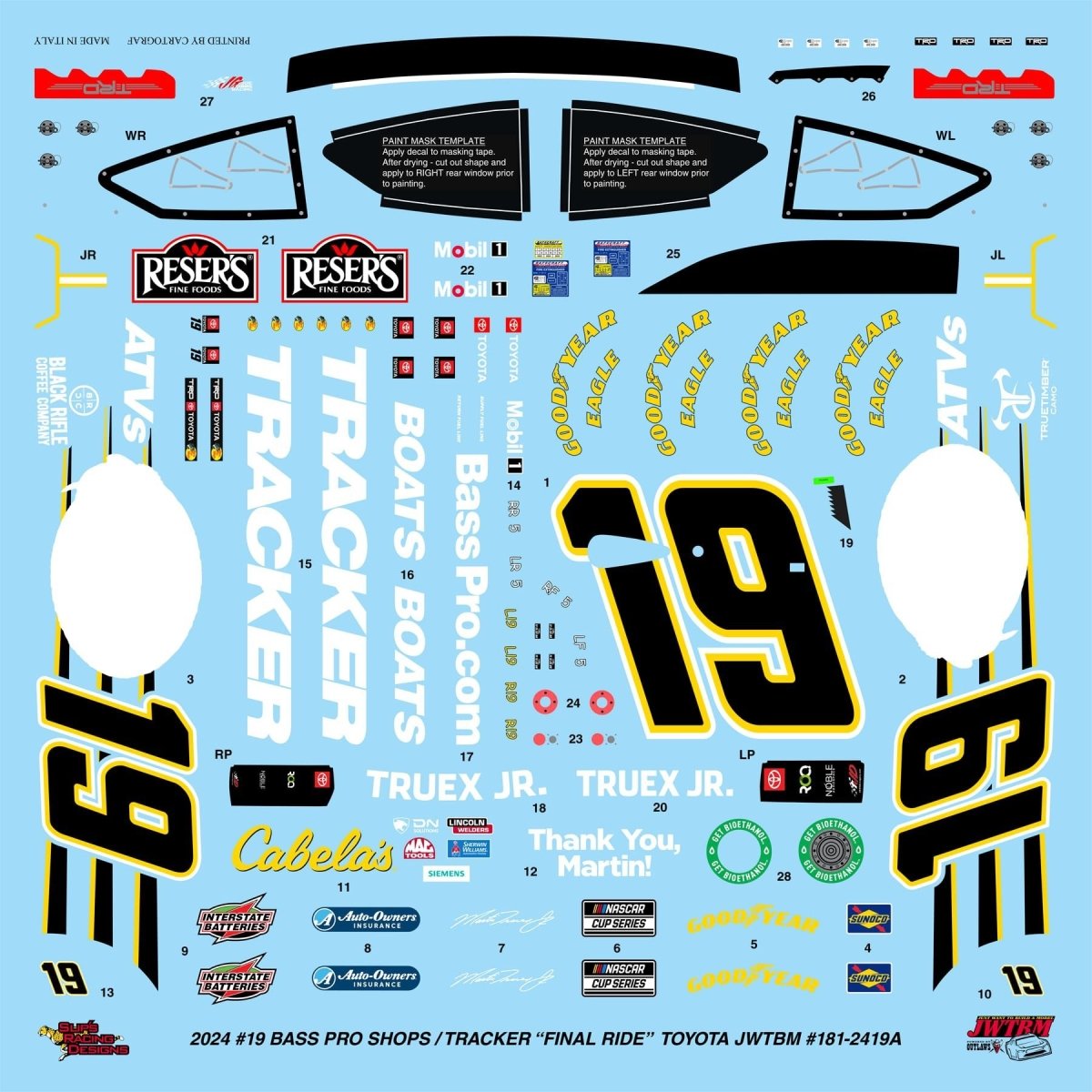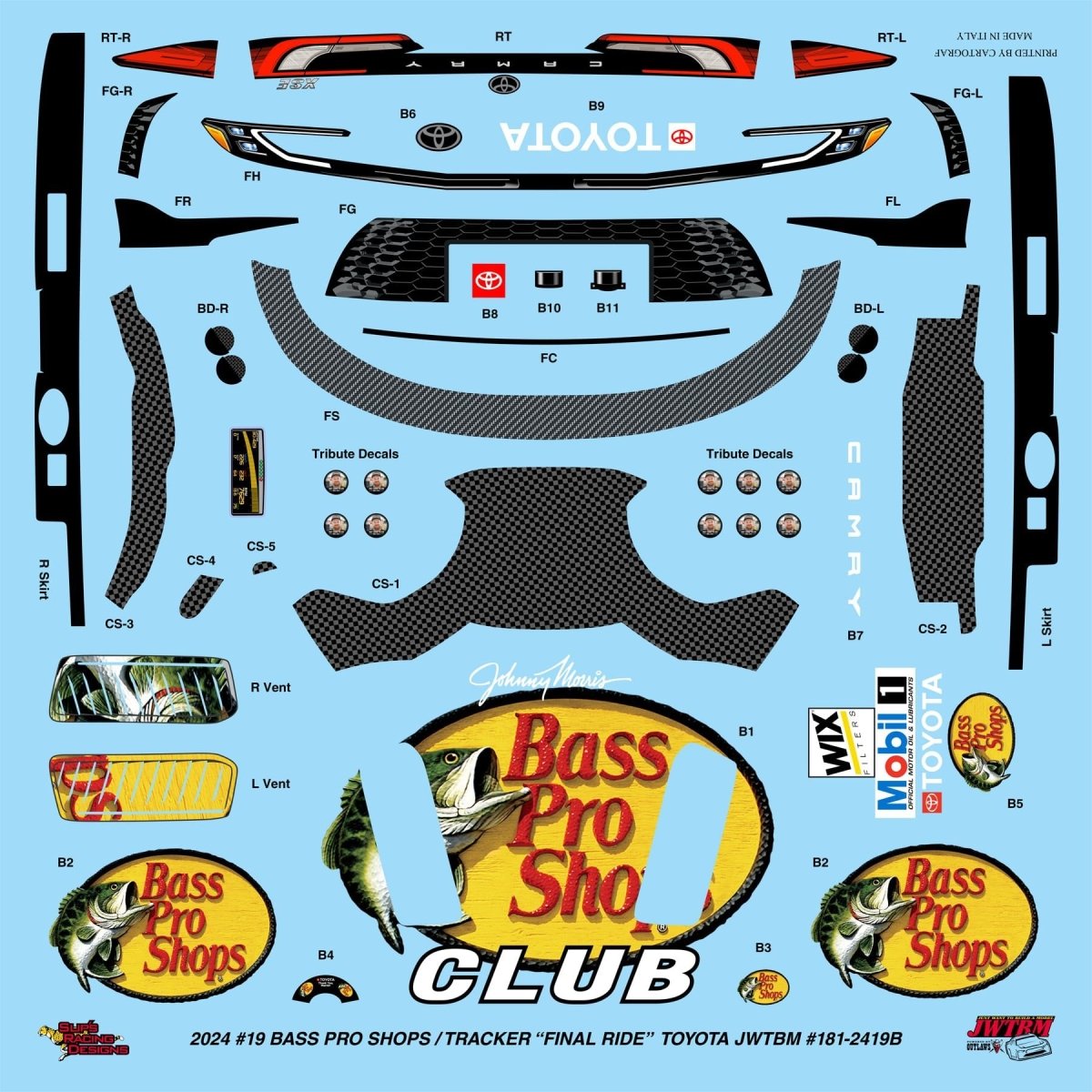 JWTBM 2024 #19 Bass Pro Shops / Tracker "Final Ride" Toyota Decal Set - JWTBM181-2419